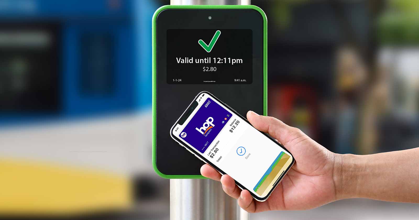Remember to tap the Hop reader every time you board a bus or train (including when you transfer). You won’t necessarily be charged every time you tap, but your tap is your proof of payment.